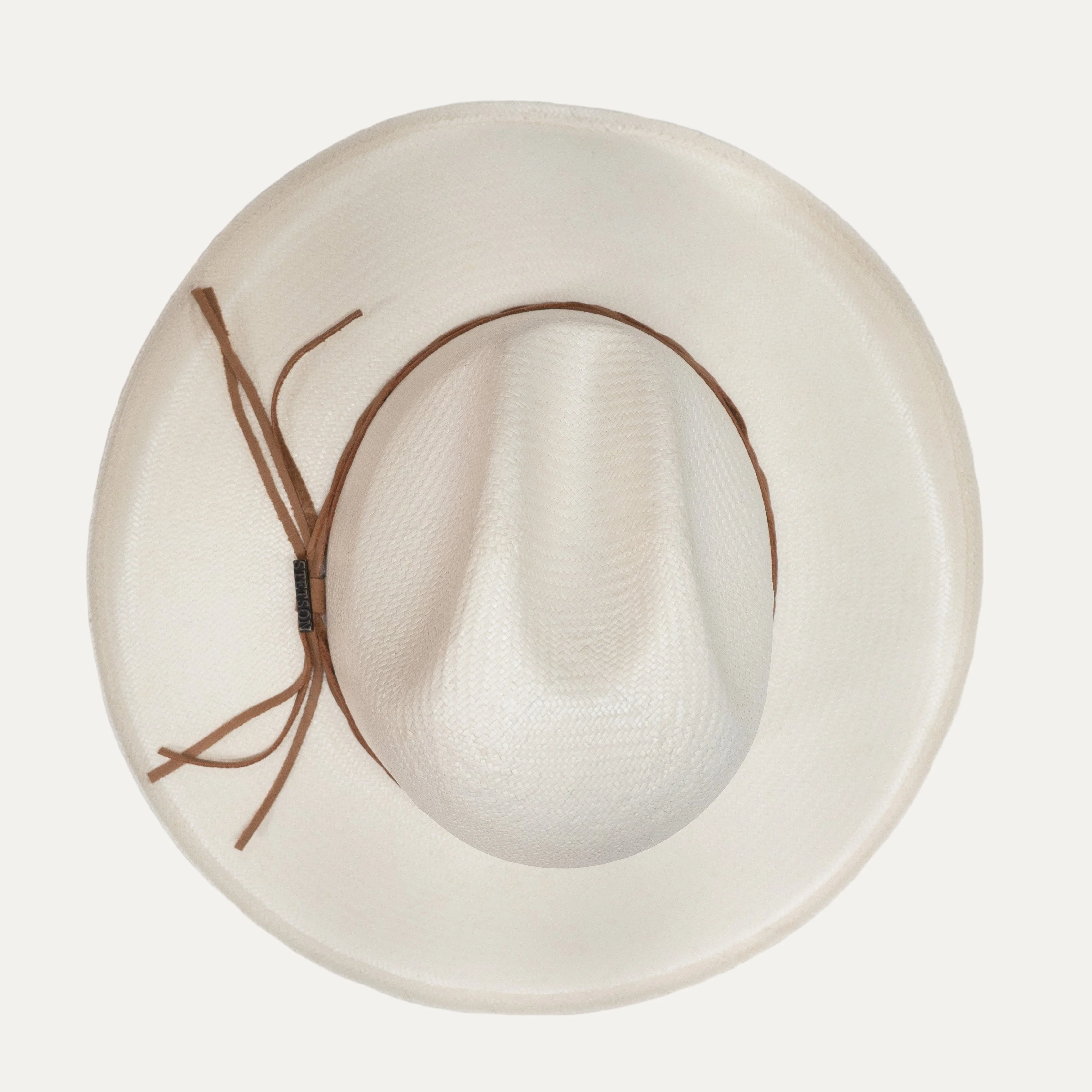 The Oklahoma is shaped in the famous Gus style, with a firm structured finish to hold its iconic shape. A western classic with a broad brim for extra sun protection. Hand-crafted from Shantung Straw, featuring a braided hat band, brown sweatband and finished with a classic Stetson hat pin.